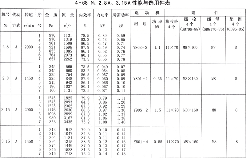 機(jī)號為No2.8 ~5的4-68型風(fēng)機(jī)主要由葉輪,機(jī)殼、進(jìn)風(fēng)口等部分配直聯(lián)電動機(jī)組成,No6.3~20除上述部分外還有傳動部分。