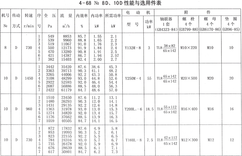 4-68性能與選用件表