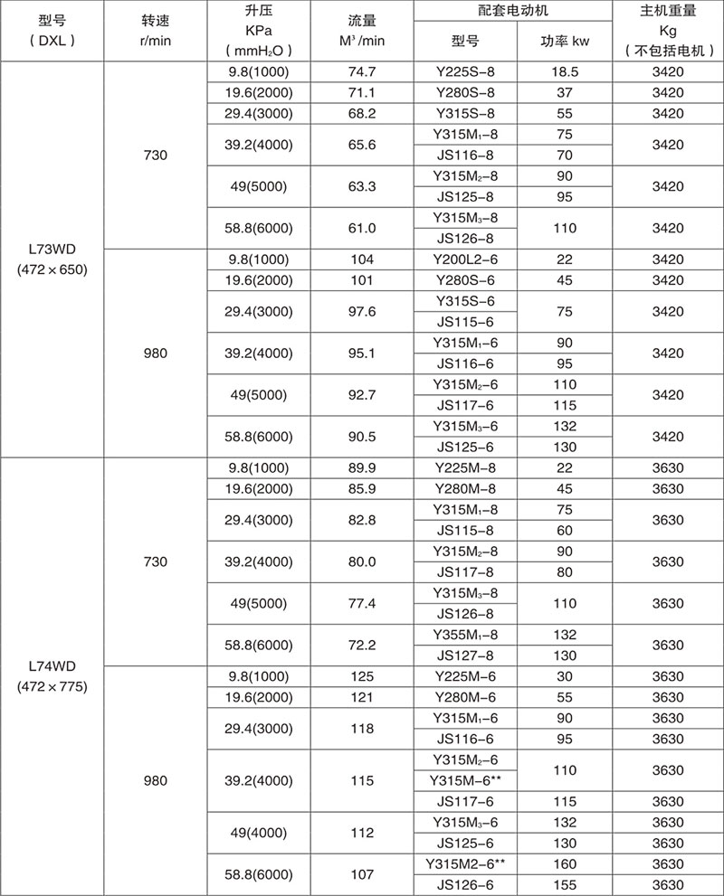 L型羅茨鼓風(fēng)機(jī)系列的性能覆蓋面廣。流量從0.25-1000m³min,升壓高可達(dá)98KPa。