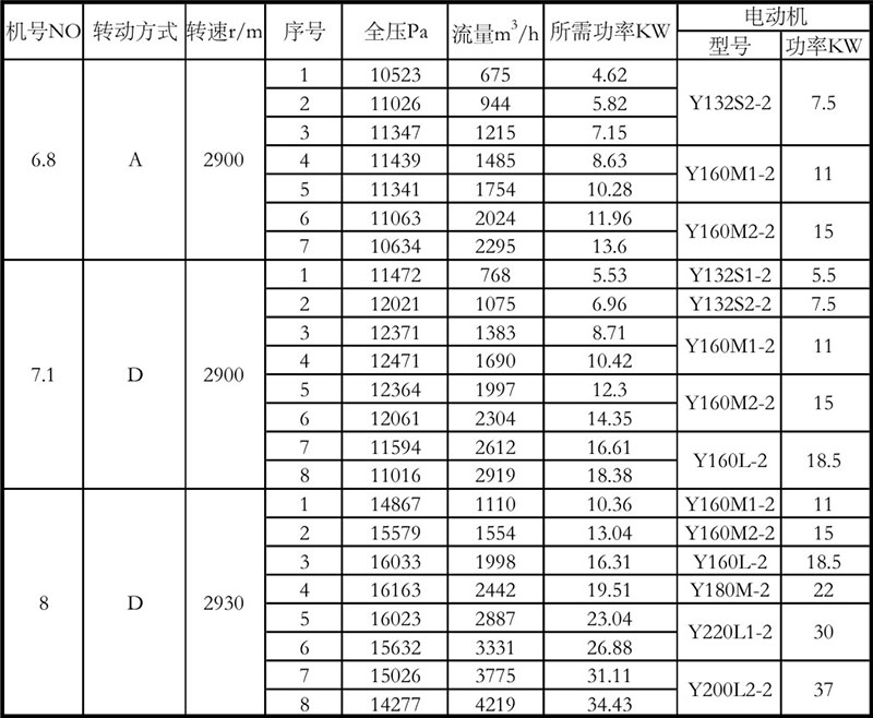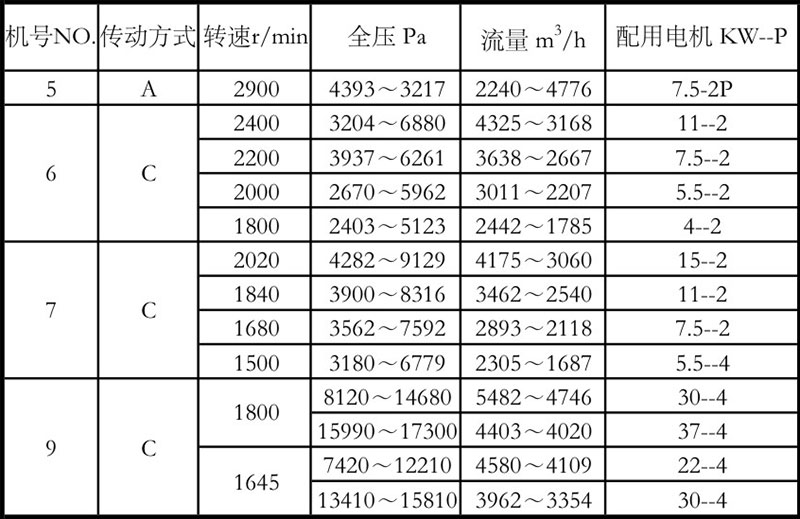8-09高壓離心風(fēng)機性能參數(shù)表