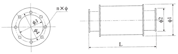 3、消聲器與風(fēng)機連接法蘭口徑不一致時,可配接變徑管過渡,但當(dāng)量角不應(yīng)大于30°。連接法蘭間應(yīng)避免剛性聯(lián)接,并注意密封,防止漏氣、漏聲。